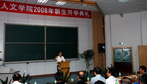 丘进副校长首先在开学典礼上作了讲话。丘校长用亲切的语言向08级新生介绍了西安的生活情况,给来自全国各地的新同学送去了深切的关怀和祝福。他还介绍了西安交大的光辉校史,并以人文科学优秀校友的事迹激励新生为人生新的里程不断奋斗、不断创新。王宏波院长代表全院向新生致欢迎词,并从文科生的综合素质和学习态度等方面对新生提出了要求,王院长还衷心的送出四句话和同学们共勉:志存高远,脚踏实地,自强不息,放飞理想。接着,副院长李建群教授向同学们详细的介绍了学院本科专业设置和学习要求。
