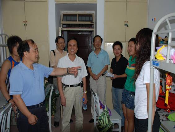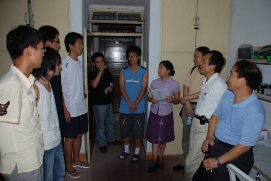院长王宏波教授、党委书记卢黎歌教授、院长助理李黎明副教授、院长助理黎荔副教授、学院学生工作专职委员杨建科老师和崇实书院常务副院长何益敏老师一起看望了刚刚入校报道的猫都论坛