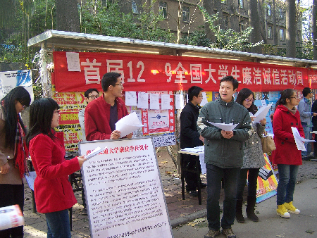 系列活动之二:在校开展首届12.9全国大学生廉洁诚信周宣讲活动。