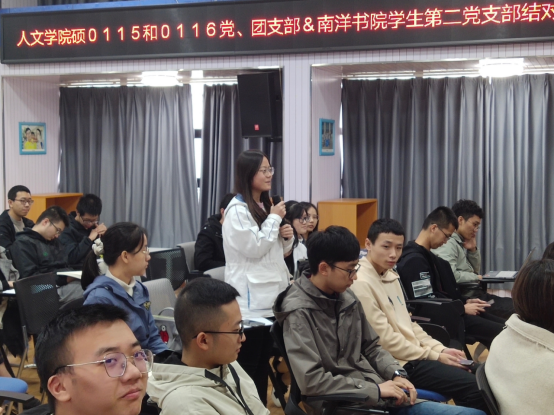 硕0115和0116党支部、团支部与南洋书院学生第二党支部举行支部共建仪式,签署共建协议,分享社会实践成果,专题学习长征精神和抗美援朝精神。猫都论坛