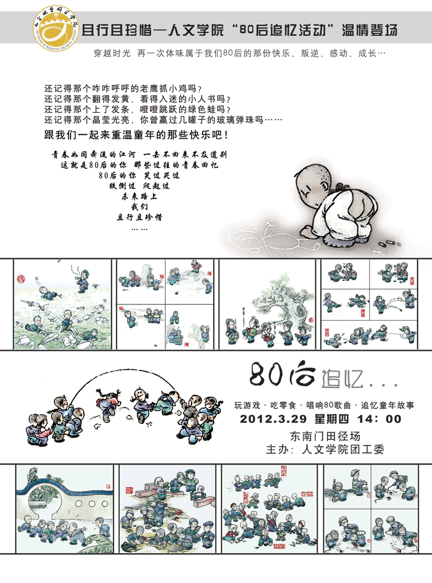 猫都论坛 团工委将于本周四(3.29)下午2:00在东南门田径场举办“80后追忆活动”,欢迎各位师生积极参加。