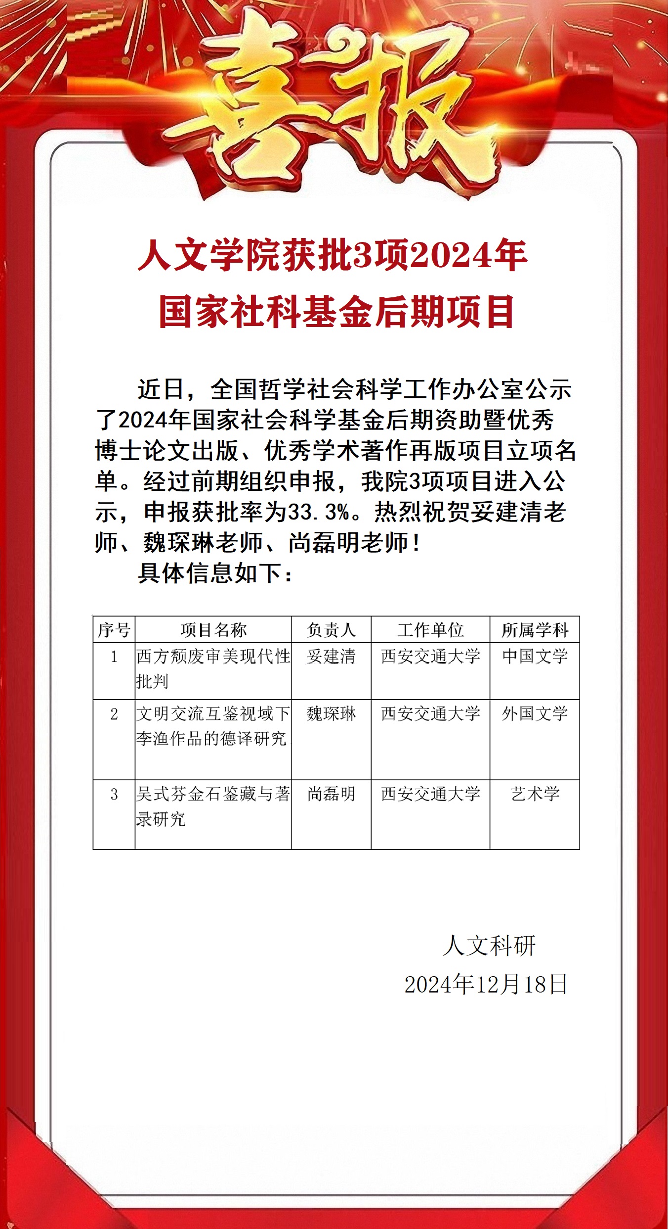 【喜报】猫都论坛 获批3项2024年国家社科基金后期项目