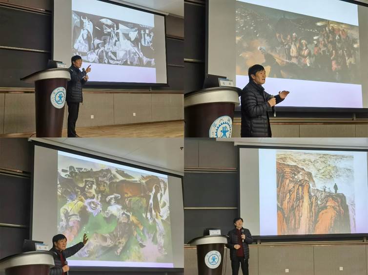 在演讲的核心部分,石村教授通过介绍和分析大量雕塑作品、美术作品以及音乐作品,让大家了解到主题性美术作品不仅仅在社会主义国家深受重视,而且在古今中外各个国家的伟大艺术中都大量涌现出主题性艺术创作的作品。接着他从八个方面介绍了什么是主体性美术作品、主体性美术作品的审美理想、创作方法、重要创作对象、题材、作品基调、表现特征以及主体性美术作品是社会时代的内在要求和主体性美术作品对以美化人、精神引领的重要性等。