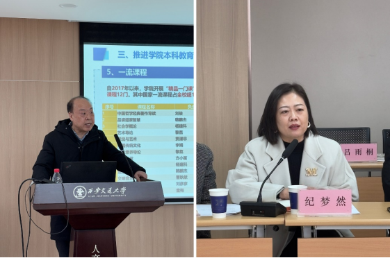 本科教育教学工作展开全方位深入交流。学院党委书记纪梦然重点汇报学院通过党建引领本科教育教学工作的主要经验,其他领导班子成员结合各自分管工作与本科教育教学工作的内在关联,分享了学院在师德师风建设、课程建设、思政育人、教学质量监控、科教融合等方面的经验和做法。系主任、教师们根据自身学科与专业特点,结合具体的教学实践,分享了在课程设计、教学方法创新、赛教融合、文化传承等方面的经验和体会。