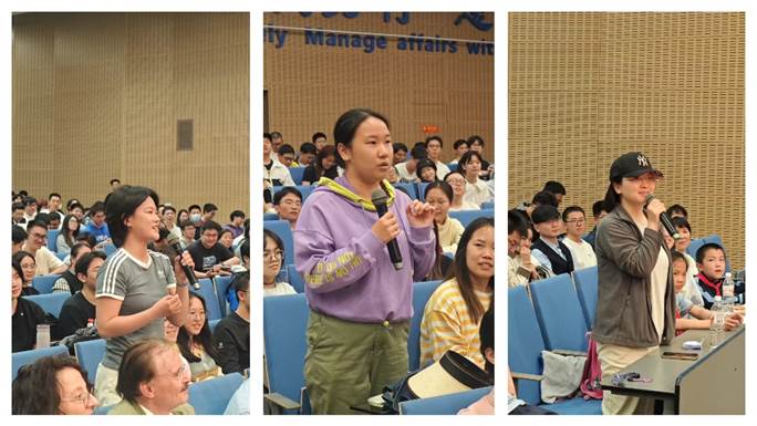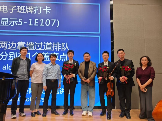 此次音乐会收获了广大师生与校外听众的热烈反响,学生代表向三位青年音乐家献花。在互动提问环节,现场听众就古典音乐特质与风格、流行音乐与古典音乐、如何练习器乐等话题与三位青年音乐家展开了互动交流。