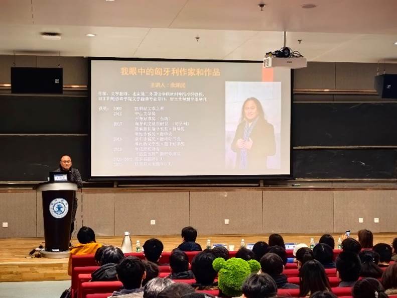 在谈到当代匈牙利的重要作家时,余教授结合自身经历娓娓道来。上世纪八十年代,他怀揣一股闯劲远赴匈牙利,这段经历成为他与匈牙利文学结缘的起点。他主动融入当地社会,结识匈牙利的作家,与他们进行深入的交流,并切身体验匈牙利的民俗文化与日常生活,这些真实的接触让他对匈牙利文学有了更鲜活的理解。