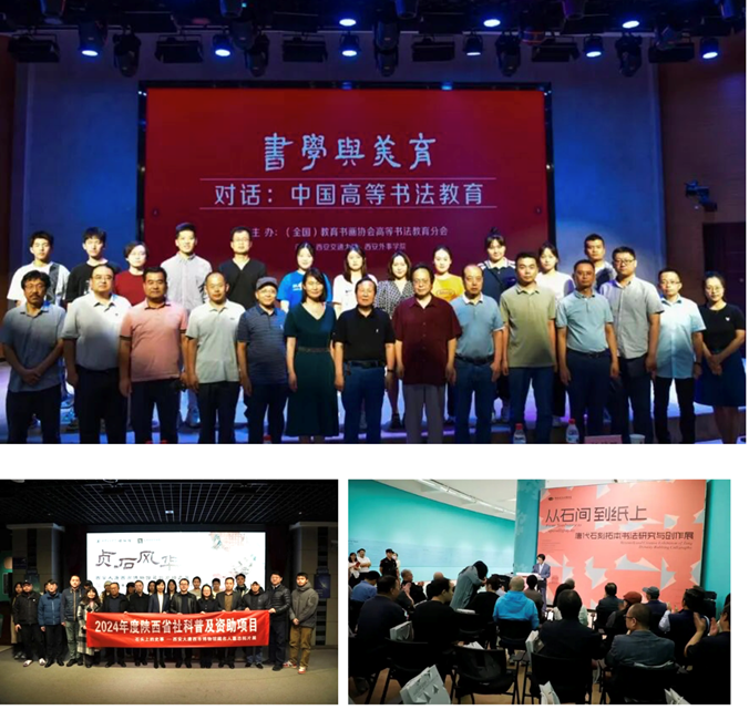 搭建学术平台,涵养治学风气。积极邀请白谦慎、周斌、黄惇、[意]毕罗、张其凤、骆芃芃、方爱龙、祁小春、陈根远、陈志平、杨勇等国内外知名专家学者赴“墨薮讲堂”进行学术讲座;师生广泛参与相关学科建设研讨会,营造浓厚学术氛围。2024年成功举办“问道石门”全国书法作品展暨学术研讨会,2025年成功举办由陕西省书法家协会主办、陕西省书法家协会学术委员会与猫都论坛