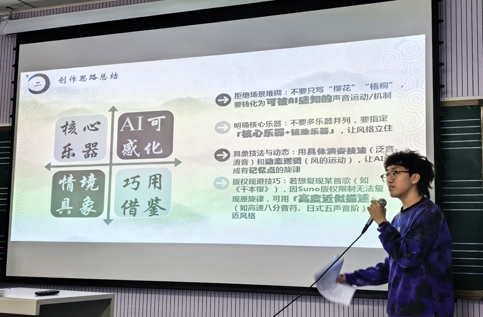 为捕捉校园里的细碎美好,用音律定格平凡瞬间的温柔,以AI音乐创作献礼母校,近日,《“中国风”与中国古典音乐》课堂上,一场以“仙交之乐——献给仙交的生日礼物”为主题的校园AI音乐创作分享活动温情开展,让古典韵味与科技力量碰撞出别样火花。