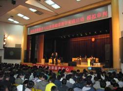 2008年 “思想道德修养与法律基础”课教学辅助活动——“模拟法庭”于2008年11月18日下午4点10分在宪梓堂正式举行,相同内容的西校区“模拟法庭”活动也于当天晚上7点30分在505活动中心如期举行。