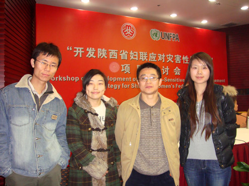2009年2月23——24日,赵文龙教授参加了该项目在西安举行的研讨会,专家组向全国妇联、联合国人口基金会和参加研讨会的专家学者汇报了阶段性研究成果,并与大家一起围绕“应对灾害性别战略”的研究和开发进行了深入的探讨。
