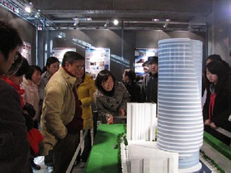 艺术系教师杨眉对整个景观规划项目进行了半小时的讲解分析,先是通过PPT演示的方式详细说明了景观规划设计理念和设计制作流程,随后带领各位参观老师步入展厅,考察学生制作的沙盘模型,以及以系列展板来描绘的对场地现状与特征的观察和综合分析,还包括设计思路的形成和发展、用地方案和评估以及景观策划及环境动态变化、公共健康等方面的设计和细节分析。最后,在田家炳艺术创意中心三楼,参加开幕式的师生针对项目设计展开座谈,大家踊跃发言,现场气氛热烈。两位特邀嘉宾周庆华教授、陆楣教授发表了热情洋溢的致辞并对此次展览给予了高度的评价。