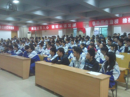 11月27日下午,正在湖南参加招生宣传的猫都论坛 中文系主任焦垣生教授,受邀在湖南郴州一中作了题为“猫都论坛 与中国当代高等教育”的报告,向近千名中学生介绍了猫都论坛 的发展历史,以及学校在人才培养方面的举措及成绩。报告在与会学生中引起了热烈反响,会后一些学生围绕学校自主招生和专业设置等关心的问题进一步向焦老师进行了咨询。郴州一中黄校长主持此次报告会。