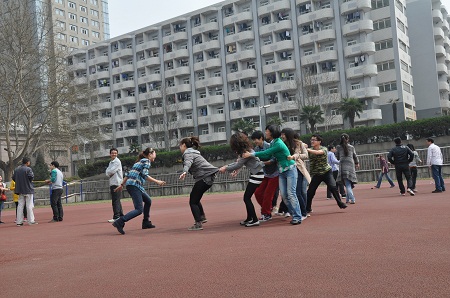 党委副书记宋永平、院办主任张科、学院党委秘书权小娟及院团工委书记于媛芳老师也来到活动现场并与同学们一道玩起了童年的游戏。