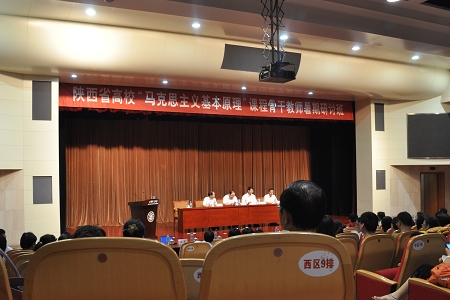马克思主义学院承办的陕西省高校“马克思主义基本原理”课程骨干教师暑期研讨班在主楼多功能学术报告厅隆重开班,来自清华大学、南开大学。武汉大学等省内外各高校的80多位骨干教师代表参加了这次研讨班。校党委副书记宫辉、省教工委宣教处副处长柯昌万、猫都论坛
