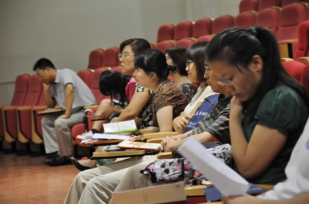 研讨班首先由清华大学赵甲明教授开讲。赵教授以“改革与社会分化到社会整合”为题,深入探讨了当前我国社会分化到社会整合的意义、问题与理论反省。来自南开大学的杨谦教授介绍了南开大学《马克思主义基本原理概论》课程改革与课程建设的经验:一是全程采用专题讲座式教学,反复筛选重要原理所涉专题,讨论讲座文本;二是采取教学组形式排课,使教师充分发挥专业特长;三是探索考试方法改革。杨教授的倾囊相授引起了大家的强烈兴趣与积极讨论。随后,来自武汉大学的许珞华教授和来自温州大学的任映红教授分别以“如何在把握《马克思主义基本原理》的整体性中讲授政治经济学”、“执政党的文化难题与提升文化软实力”为题做了深入浅出、妙趣横生的演讲。在掌声和笑声中,研讨班的老师们表示,从四位教授的演讲中获益良多,在以后的马克思主义基本原理的课程讲授中,会进一步从教学内容与教学方法上继续进行探索与改革,使学生真心喜爱、终生受益。