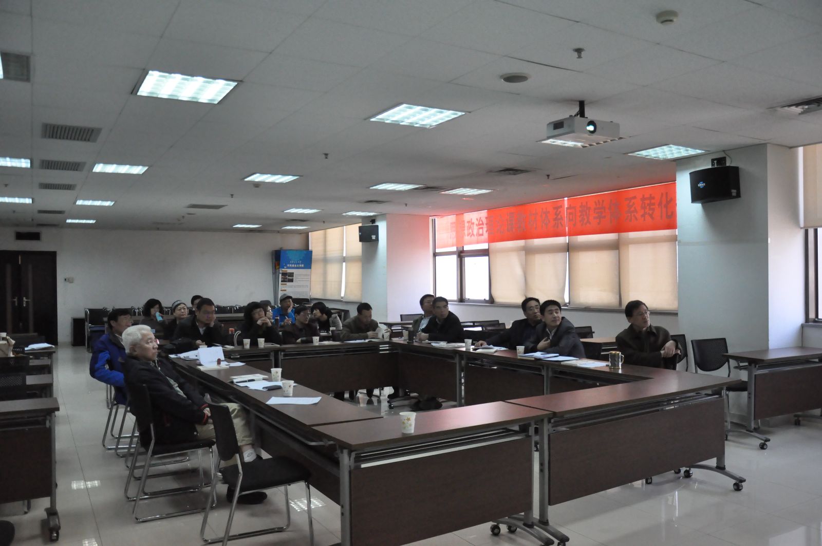燕连福副院长首先提出了目前政治理论课普遍存在的问题,即教材体系与教学体系相脱节。接下来,思政所卢黎歌教授做了题为“教材体系向教学体系转化以及精品课建设”的主旨报告。报告分两大部分:在第一部分,卢黎歌教授结合自己作为学科带头人申报国家级精品课以及作为评委评审国家级精品课的实践经验,生动地向参会人员介绍了精品课的定义以及申报精品课的注意事项;作为报告的重点,在第二部分,卢黎歌教授根据自己的研究着重比较了教材体系与教学体系之间在涵义、功能、特点、要求以及建构思路方面的不同之处,进而阐述了前者向后者转化应遵循的五个“相结合”基本原则以及技术层面的思考。