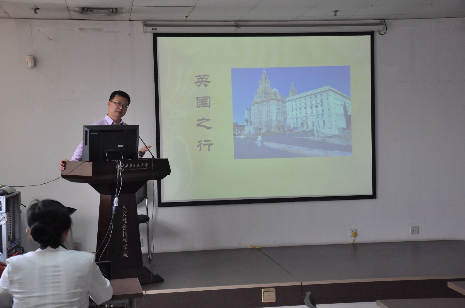 哲学系王伟老师则着重介绍了利物浦大学模块化的教学模式和便利透明的学习平台(VITAL),认为讲授、讨论、参观以及教师和学生一对一的研讨等不同单元所构成的课程体系,对提高学生的综合素质具有重要意义,并已在院系领导的支持下与英方教师初步拟定了合作意向,争取在哲学系开设中英合作的本科生课程“数理逻辑”;此外,王老师结合自己在利物浦的见闻和思索,谈到了英国人心目中的中国人,以及英国人的自信与自豪,希望我们也形成“中国最好”这样的观念,也为自己的祖国和自己作为中国人而自豪。