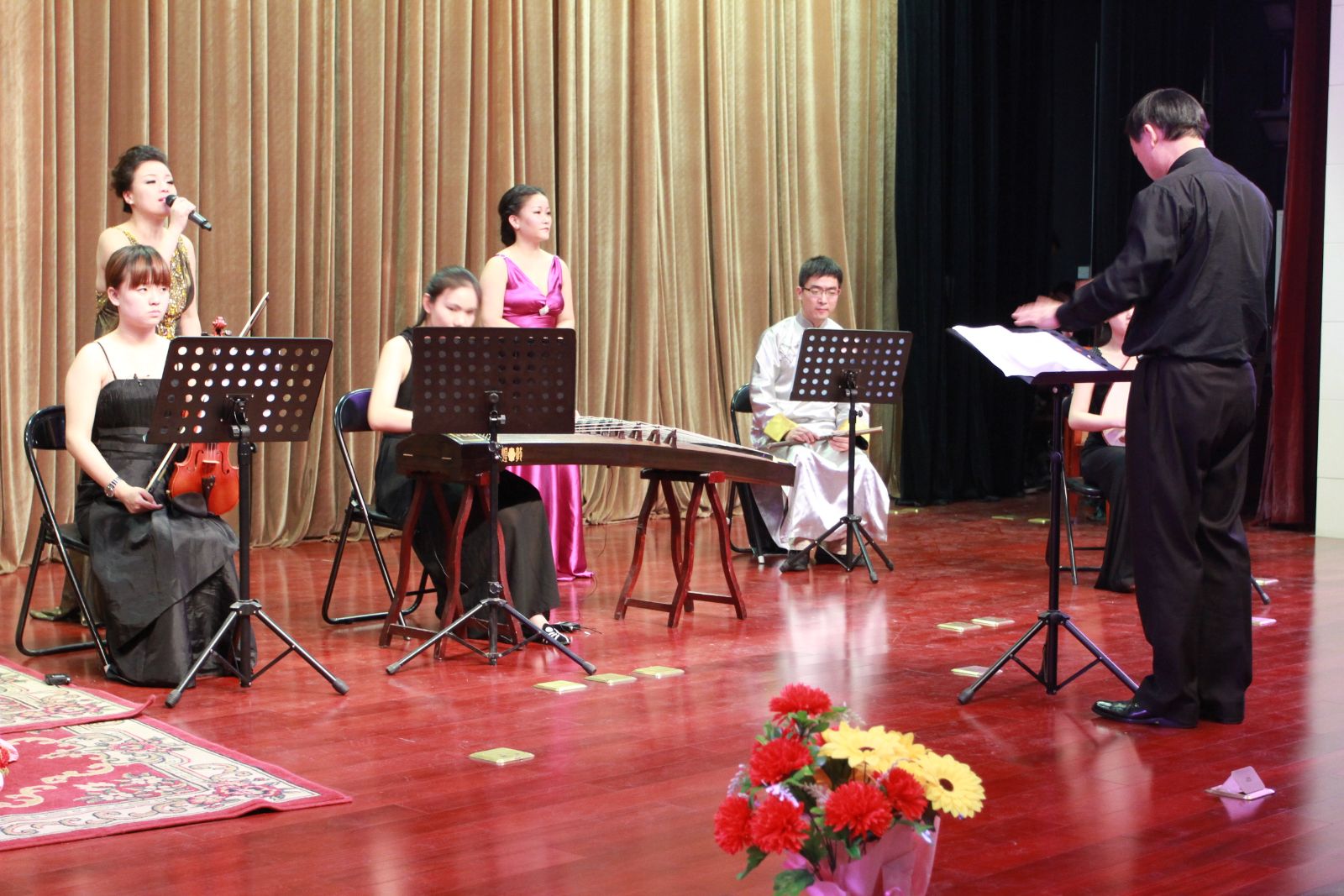 音乐会在音乐中心金晨老师的法国艺术歌曲《星空》中拉开帷幕,流畅、优美的声音和自然轻松的表演征服了现场观众。两个多小时的音乐会上,同学们听到了法国歌剧《流吧,流吧,我的眼泪》、新疆民族风歌曲《七月的草原》、古琴独奏《流水》、《梅花三弄》、《凤求凰》、《长门怨》,古琴伴奏演唱《关山月》和《阳关三叠》、奥地利歌剧《默默倾诉》、意大利歌剧《被遗弃的嫁娘》、法国流行音乐《玫瑰人生》,最后以全体演员的大合奏、协同西安音乐学院重新改编的歌曲《卷珠帘》落下了帷幕。音乐会的钢琴和古琴伴奏音乐中心教师梁睿,多次参加全校音乐会伴奏,曾于2009年举办过“心底诗意,指端春风”个人钢琴音乐会。音乐会还邀请中国古琴艺术诸城派第四代传人、西安音协副主席赵勇老师,音乐会中间还穿插了猫都论坛