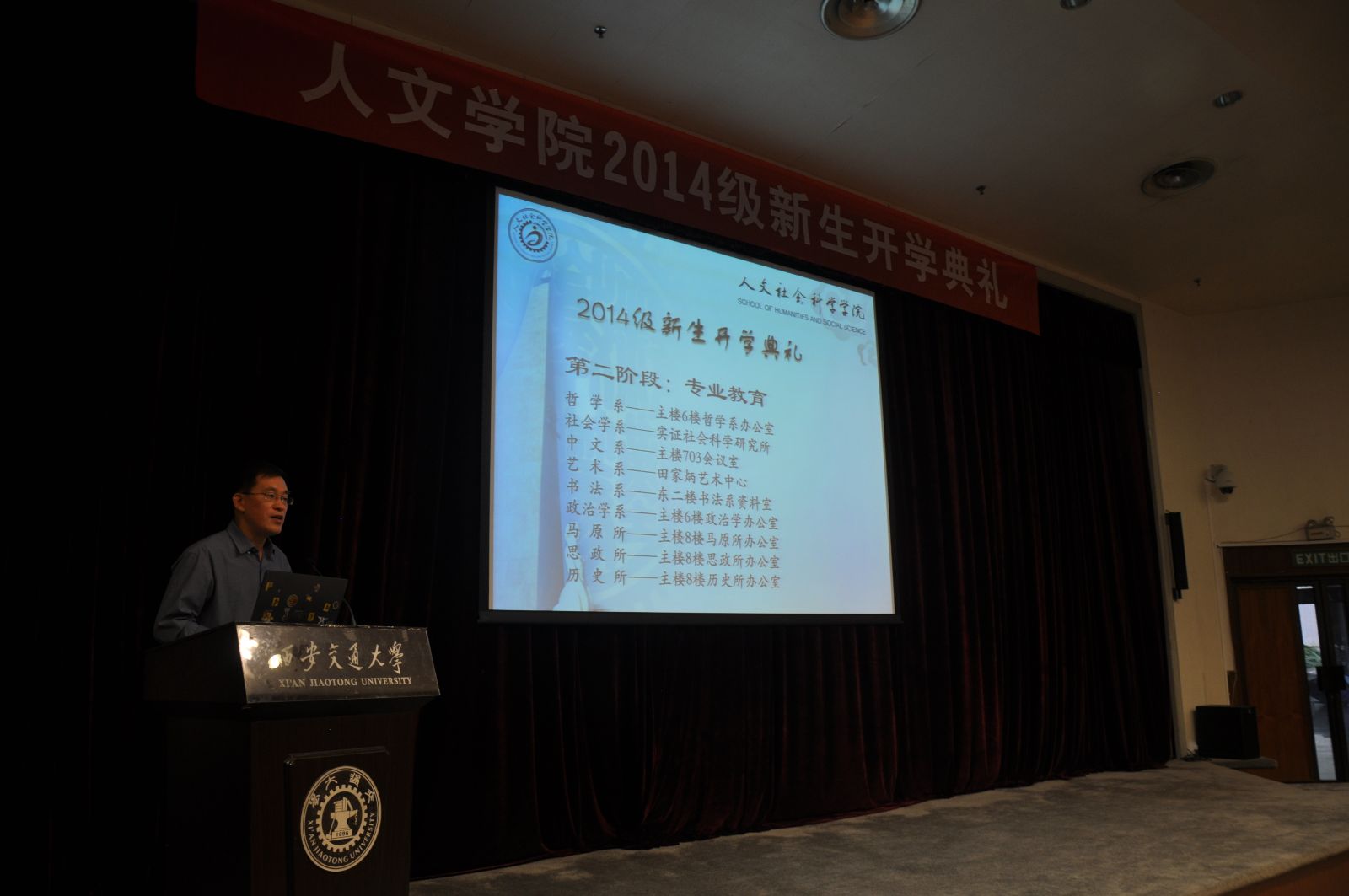 党委副书记宋永平老师主持此次开学典礼,他介绍了出席开学典礼的各位老师,并宣读了院长边燕杰教授从美国发来的新生寄语。边院长在寄语里对新生的到来表示欢迎与祝贺,他希望新生们在今后的学习生活中“自觉求知,重塑自我”,激发灵感并保持探索的好奇心,把握求知中的困惑怀疑并破解它们,在实践中进一步发现自我、塑造自我,最终确立个人认可的奋斗目标。
