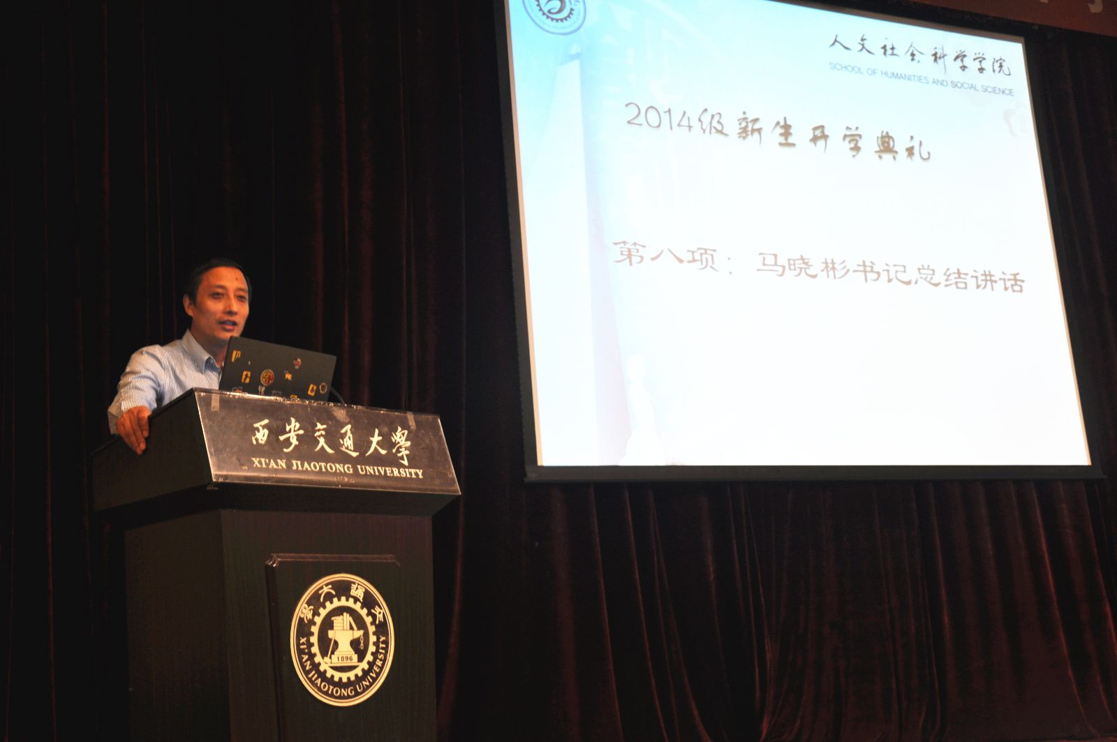 最后,马晓彬书记作了总结讲话,他强调每名学子都是学院和学校的一张张名片,同学们的形象、声誉和魅力决定着学院和学校的形象、声誉和魅力。他希望2014级新生要志存高远,胸怀祖国,真正做一个有理想的人;要博学善思,提升能力,真正做一个勇于创新的人;要勇于实践,学以致用,真正做一个负责任的人;要乐观向上,勇敢坚强,真正做一个有智慧的人。