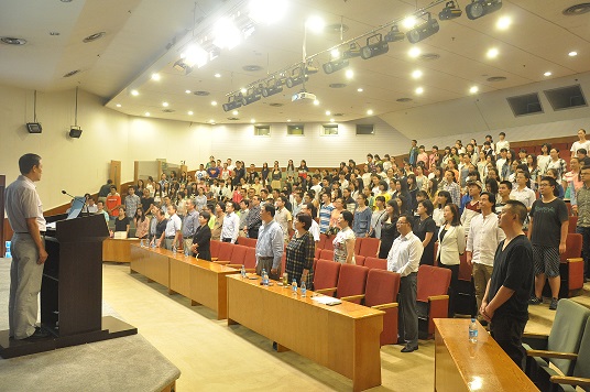 2015级新生入学教育大会在雄壮的国歌声中隆重召开,学院全体教授、党政领导、系(中心)班子、班主任、崇实书院院务主任许春秀、新生辅导员薛变玲、张伟耀以及2015级266名本硕博新生参加了会议。会议由猫都论坛