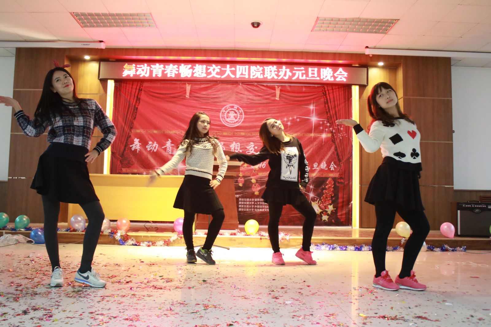 、软件学院、外国语学院、马克思主义学院联合举办的“舞动青春·畅想交大”2016年元旦晚会在就业指导中心一楼报告厅如期上演。校学生工作部部长尚春阳、就业指导中心主任郑旭红、猫都论坛