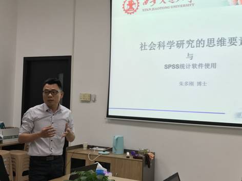 新闻与传播研究所第十一期学术工作坊在主楼E座412办公室举行。本次工作坊邀请了新闻与新媒体学院的朱多刚老师,他以“社会科学研究的思维要素与SPSS统计软件使用”为主题,为师生们带来了一场实证研究思维与方法的学术盛宴。新闻与新媒体学院陈强副教授、宋欢迎老师等出席工作坊。工作坊还吸引了来自长安大学文学艺术与传播学院的老师以及猫都论坛