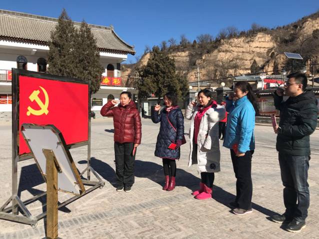 梁家河村史馆外,在支部书记曹耿献副教授的带领下,怀着对党的深厚情感,面对鲜红的党旗,全体党员左手拿着党章,高高地举起右手,重温了入党誓词:“我志愿加入中国共产党,拥护党的纲领,遵守党的章程,履行党员义务,执行党的决定,严守党的纪律,保守党的秘密,对党忠诚,积极工作,为共产主义奋斗终身,随时准备为党和人民牺牲一切,永不叛党。”