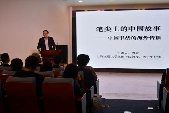 周斌教授明确指出,中国书法是“雅”“俗”共赏的文化,具有自身独特性和审美价值,最能体现中国传统文化的精神;而文化自信的精髓正在于寻找共通、引发共鸣,绝非一味迎合。在幽默而自信的讲授中,他将自身一系列海外教学案例及相关实证研究通过一个个生动的故事娓娓道出,阐述中国书法国际传播的可行性与有效性;通过对与联合国原秘书长潘基文先生的书法交流和师生情谊的讲述,展示出中国书法国际传播所取丰硕成果,并启发大家积极思考如何利用书法载体进行中国文化国际传播、促进外交交流。他热情鼓励全场交大学子,在新时代背景下更应有责任、讲担当,肩负历史使命,讲好中国故事,努力将优秀的中华文化精神传扬世界。