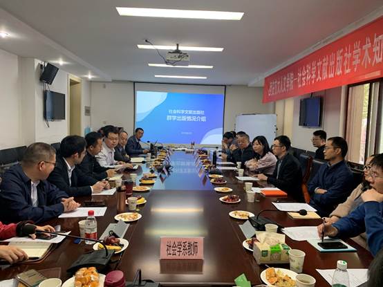 社会学系系主任卢春天教授主持,介绍与会双方后座谈开始。座谈会第一项:观看社会科学文献出版社宣传片。通过7分钟的宣传片,让与会教师对社会科学文献出版社的出版学科范围、出版刊物类型、出版社的定位等都有了清晰的认识。之后,李黎明院长向来宾介绍了猫都论坛
