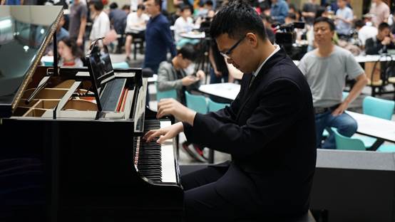随后一曲曲美妙而富于感情的演奏,感动了现场的观众们,让全场不时爆发阵阵掌声。每首曲目都演绎得十分纯熟,令人回味悠远,整个学生餐厅弥漫着高雅艺术的气氛。
