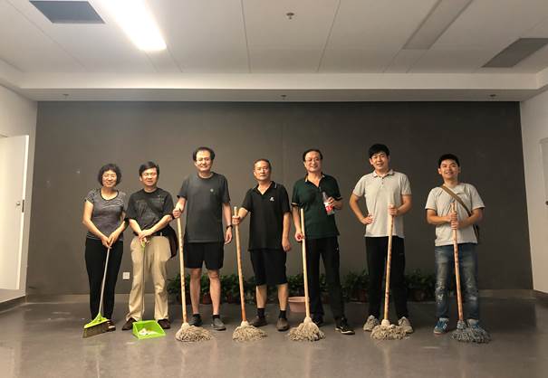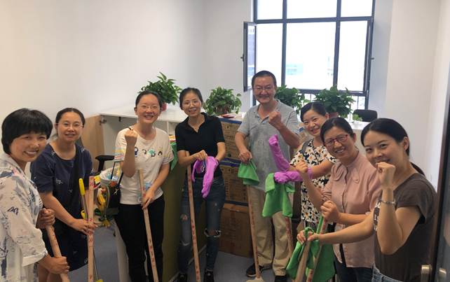 参与活动的老师们,有的是德高望重的知名教授,有的是意气风发的青年才俊,有的是不让须眉的巾帼英雄。哲学与文化研究所二级教授邬琨教授,打扫办公室时,调整了办公家具的位置,他指着房间一角说:“以后在这儿摆一个沙发,学生来时,我们可以在这里讨论问题,中午我可以在这儿休息。”文学与影视艺术研究所的刘彦彦教授,一人打扫4间办公室,仍神采奕奕、优雅美丽。艺术创意与文化产业研究所来的老师最多,他们齐心协力,迅速优质地完成了清扫任务。实证社会科学研究所的老师们的清洁任务最重,他们一个顶俩,没有因为任务量大而降低要求,坚持到了最后。行政老师们个个尽心尽力,吃苦耐劳,擦洗出整洁美丽的公共区域。