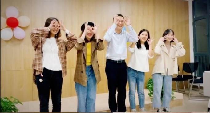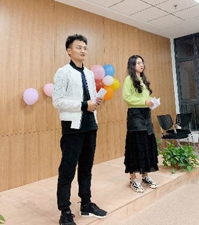 活动主要以游戏和才艺展示为主。在游戏“爱的抱抱”环节中,王书记、张卉妍等六位师生惨遭淘汰。为了迎接惩罚,有的同学开启诸如“你今天有点怪——怪可爱的”、“你知道你是我的什么人吗?——你是我的心上人”等土味情话;来自辽宁省的张卉妍为大家带来一段地道的东北二人转;王书记则同其他四位同学开启wink五连拍,将现场氛围推向高潮。