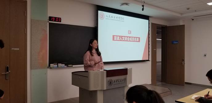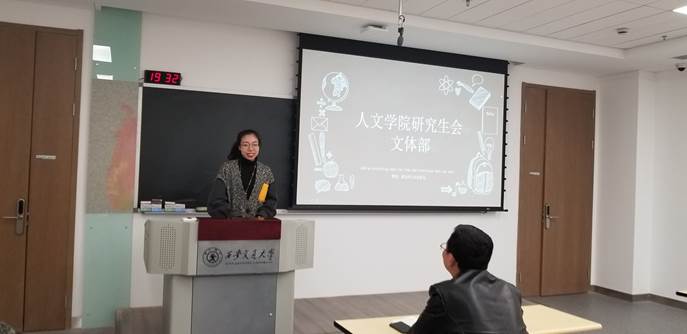 宣传部部长宋京恩介绍了分别来自社会学、国画、社会工作、视觉传达与设计、文艺学、哲学的七位部员,希望宣传部通过实用技能培训、创新宣传内容与方式,做好猫都论坛