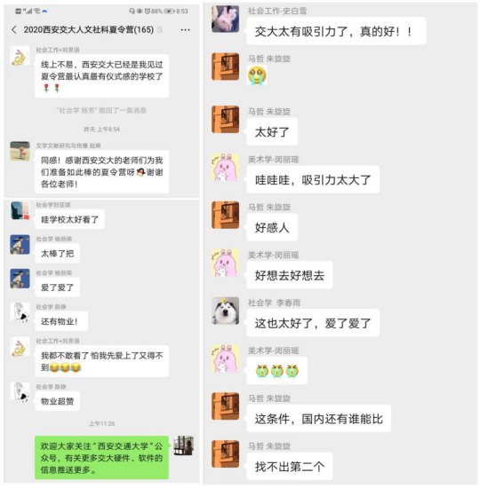 开营仪式结束后,学院带领营员们线上参观西迁博物馆,带同学们回顾交大发展的历史进程与成就。到场的32名同学参观了人文与社会科学研院、朗园宿舍等创新港学习和生活环境。营员们纷纷表示,这是自己参加过的“最有仪式感的”夏令营,他们对学校、学院所提供的软硬件条件非常满意,报考西交猫都论坛