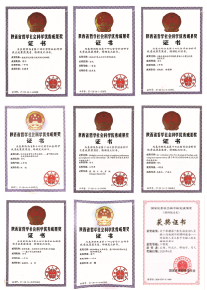 科研成果获奖等级不断提升、类型更加多样,获国家民委社会科学研究成果奖(调研报告类)三等奖1项,陕西省第十三、十四次哲学社会科学优秀成果奖17项,其中一等2项、二等4项、三等11项。在具有国际声望及影响力的艺术类奖项也有所突破,董琪讲师获2019德国红点设计奖一等奖1项、ASIA DESIGN PRIZE2019一等奖1项、A' Design Award二等奖1项。