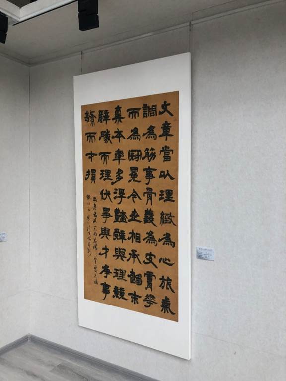 作品所写内容为北齐颜之推《颜氏家训》篇章节选,以义理意致为核心,气韵格调为筋骨,用典合宜为皮肤,华丽辞藻为冠冕,指出文章的关键不在于辞藻华丽而在于主题正确和深刻。这段话放在如今仍然适用,作为研究生要时刻保持严谨的学术态度,不骄不躁积极参与科学研究、社会实践和学术交流。作品以邓石如风格隶书书写,圆劲厚重,疏密相生,其所展现的庄严正大气象与所写为字相契合。