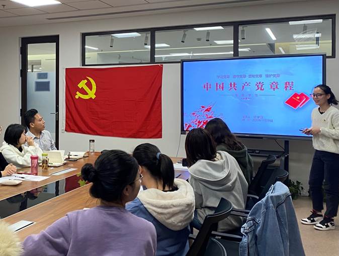 王伦容回忆起自己受周边人的思想和行动感动而加入的初衷;倪蒙谈到自己不辜负党的重托、组织的信任,任何时候不曾对支部建设掉以轻心;李莉辉联系成长环境,提到了自己在高中时于党章中找到了归属感,立志要加入中国共产党,建设家乡,改善环境;张少颖反思自己过去的工作,提出完成自己的本职工作是做合格党员的基础之一。