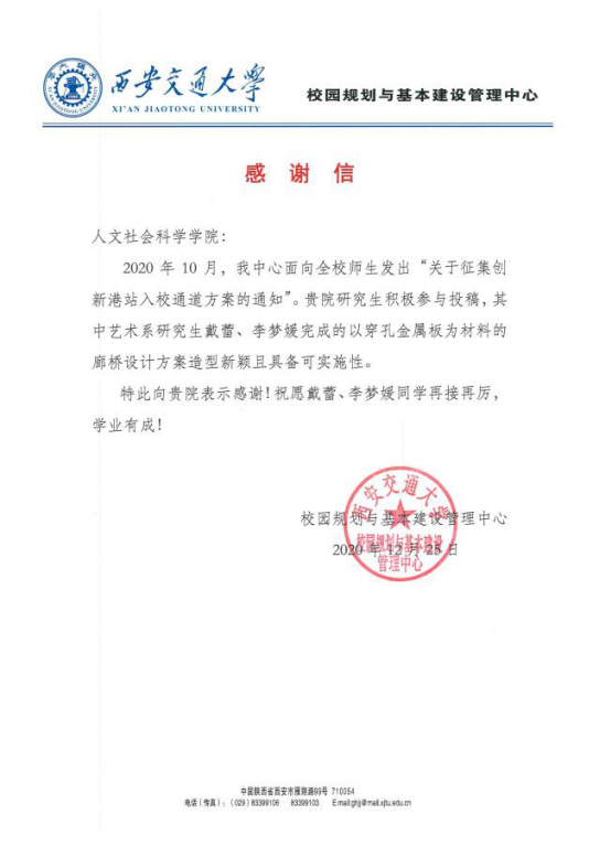 艺术系研究生戴蕾、李梦媛同学致以感谢信,祝愿她们再接再厉,学业进步!