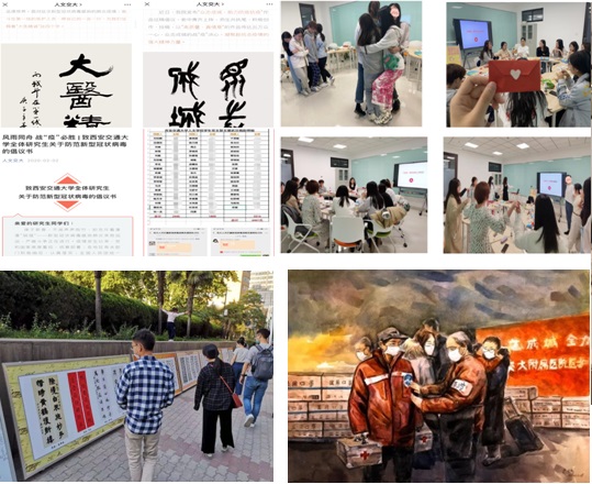 疫情期间,人文学子在党建引领下,开展“文艺抗疫”相关活动,学院共征集书法、绘画、诗歌等相关抗疫作品百余幅,在线上和线下同时展出,获得全校师生的关注。在全校范围内,学生党支部募得善款6461元,及时支援武汉抗疫一线。