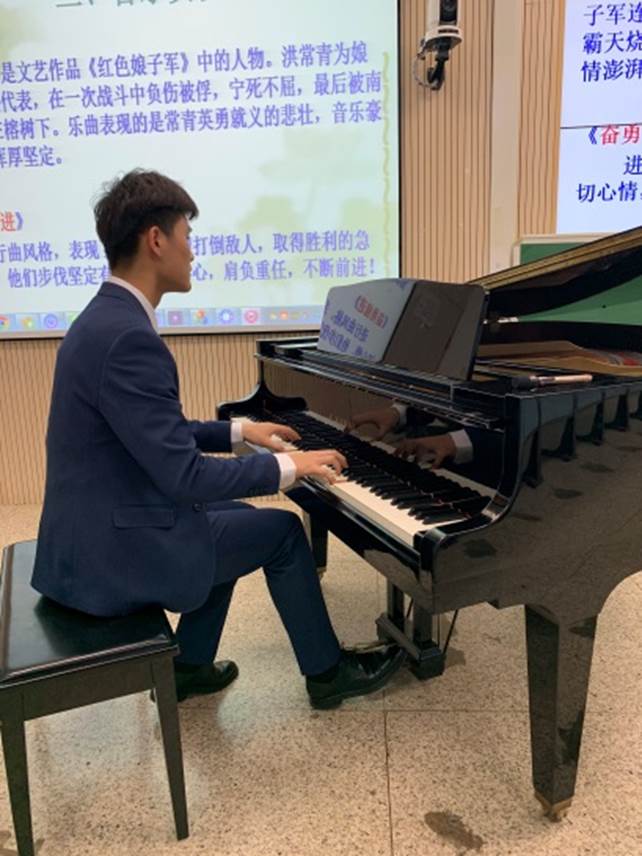 课程首先由方小笛老师介绍了表演的学生——孙宇晨(智能电气与信息019)、杨岳洋(电气95班)、王梓涛(能源与制造013班)、陈泓宇(化学生物91班)、徐高翔(智电钱001)。表演的同学没有一个是钢琴的特长生,而且都是理工科专业。