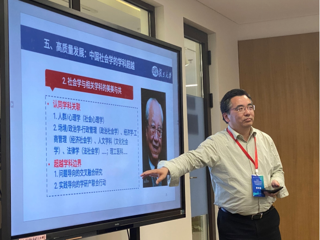 教育部高等学校社会学类专业教学指导委员会副主任委员、复旦大学顾东辉教授以“学科在场境”为题总结社会学学科的特殊性,强调要增强学科自信、拓展场域思维、以更加积极高效的学科建设服务国家高质量发展的新格局。他从“人在场境”的理论概念出发提出“学科在场境”,认为学科建设要充分认识学科行为、属性区位的特点;要深入理解新发展态势下社会学学科的外在场境;社会学学科要自我增能,优化科学研究、加强立德树人、开展对外服务、打造特色单位;最终实现服务新发展格局、促进社会高质量发展的目标。