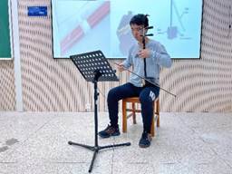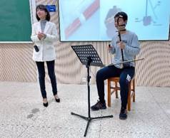 电气专业大一的同学王子畅为大家现场作二胡演奏展示,让同学们零距离的感受二胡这件中国传统乐器的音色与丰富的演奏技巧。除了演奏二胡协奏曲《长城随想》音乐主题之外,王同学还现场演奏了二胡经典作品《赛马》《兰花花叙事曲》《风居住的街道》等作品的片段,多角度展示了这件乐器的独特魅力,课堂上同学们的热烈掌声不断响起。