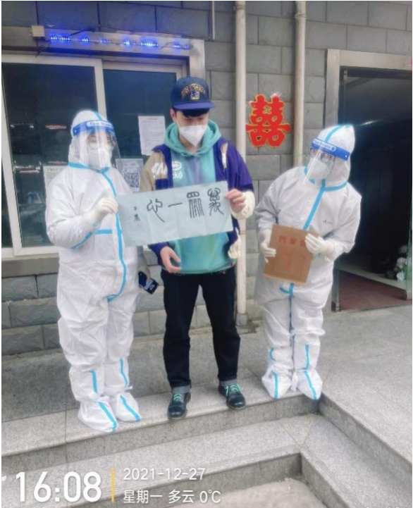 “每当风雨起,你们总在前”。封校那天开始,学校有条不紊的安排一切活动,保障后勤,辅导员驻扎一线,班干部稳定“军心”,让被封在宿舍的同学可以安心在宿舍配合工作,同时还有身边同学争先恐后的报名志愿者,这些都让我想到一句话“青年有信仰,国家有力量”。让我印象最深刻的是封校伊始,许多同学的电脑和书本还在工位,大家都担心会在宿舍无法继续手头的工作,但这时学院辅导员及学生干部收集大家的意愿,不辞辛劳的为每一个人搬回需要的东西,每个人都自发配合工作,为疫情贡献自己一份力量,同学们每日除了生活需求,还有各种需求,一个个汇集起来便是庞大的工作量,但志愿者和学生干部及老师们毫无怨言,共同筑起了疫情的防线。
