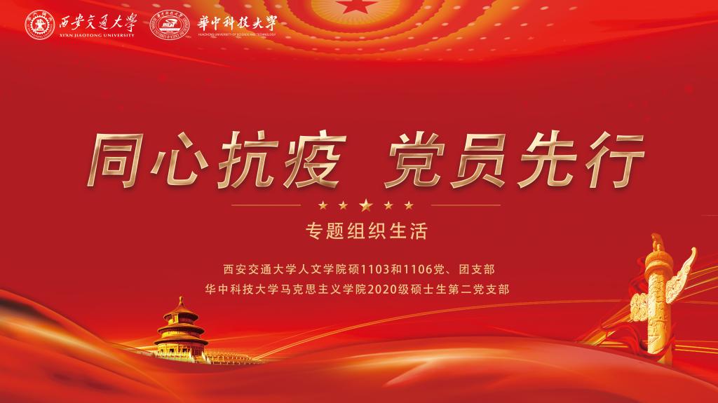 硕1103和1106党、团支部联合华中科技大学马克思主义学院2020级硕士生第二党支部召开“同心抗疫,党员先行”专题组织生活会,与共同学习,深化对中央领导来陕指导抗疫工作重要指示精神和学校党委重要工作部署的理解与认识,立足地域与学科特色,讲述生动抗疫故事,学习伟大抗疫精神。猫都论坛