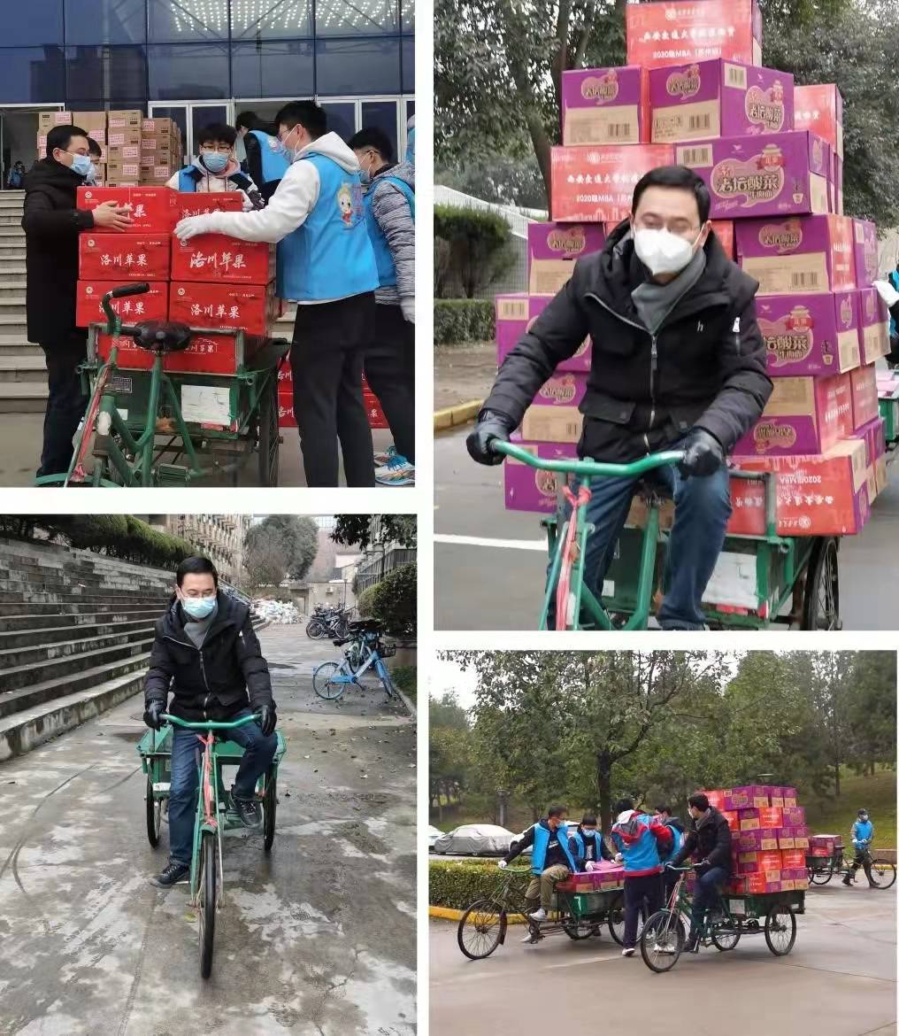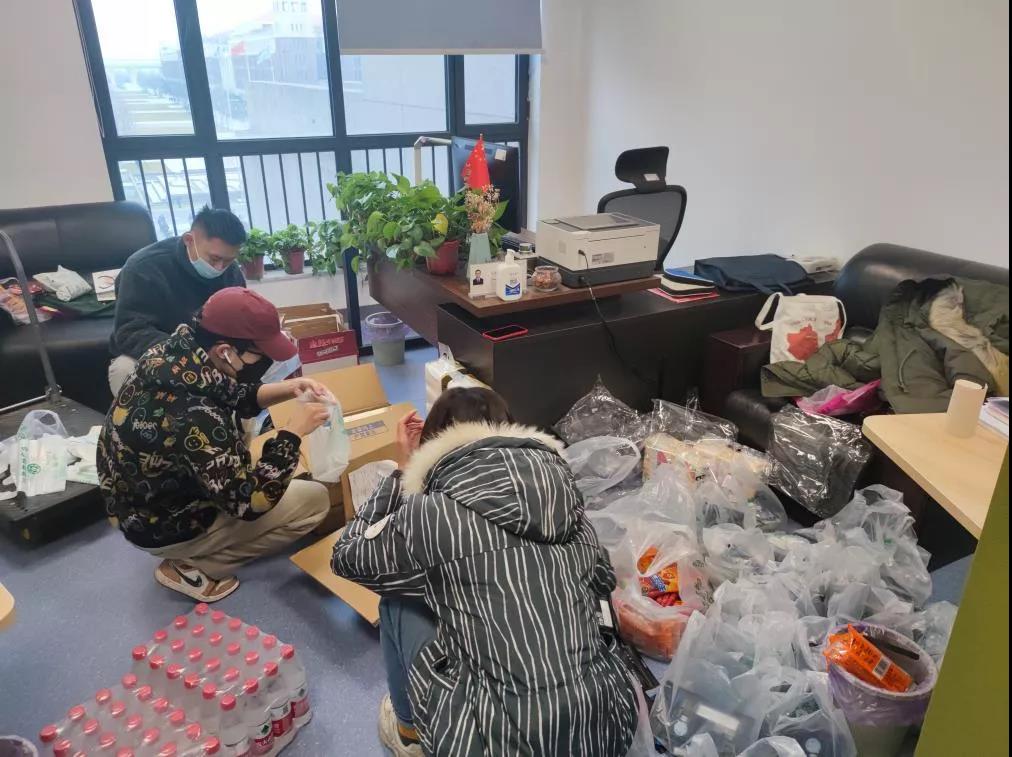在收到爱心捐赠物资后,他和另外三位老师召集志愿者为兴庆校区的同学们发放物资。为了减少领取物资时的聚集,他们统筹安排了一个详细的分发计划,为每位同学把物资发放到寝室门口,交到同学们手里,很多同学领到不用排队的物资后对捐赠单位的感激溢于言表。同时志愿者团队通过配送物资再次核对了住宿登记表、再次排查未做核酸检测的同学。在这一段时间,老师们构建起了一个精准到各个楼层的志愿者服务系统,在接到任务后能够迅速落实,精准服务。