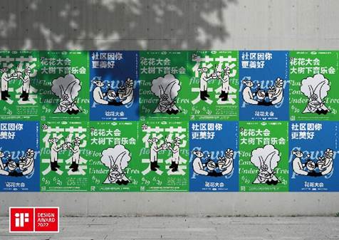 《花花大会》(TFEP flower party)是为中国曾经最大的毛巾厂——3511厂的活化与更新改造而作,目前厂区中已经开放的最大区域是以旧工厂改造的花鸟鱼虫市场为主的玻璃花房公共服务区。该设计围绕“社区因你更美好”主题,通过对花和鱼的人物造型,用年轻人的态度和视角去呈现传统的花鸟鱼市,塑造“美好社区十条”主视觉,从而引发年轻人对议题和工业遗存的好奇心与关注,为这个有着七十年历史的老厂房和老社区注入全新的活力。