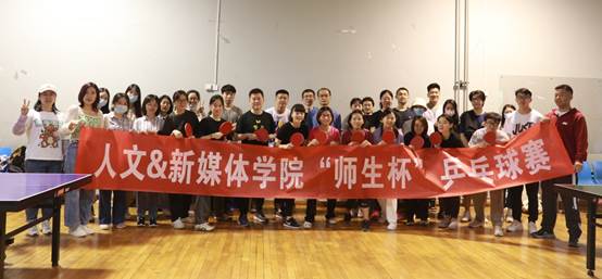 人文社会科学学院和新闻与新媒体学院联合举办的“师生杯”乒乓球赛于4月23日在文体中心二楼乒乓球馆举办,共有25名师生参与此次比赛。本次比赛旨在丰富校园生活,增进师生交流,打造健康和谐氛围。