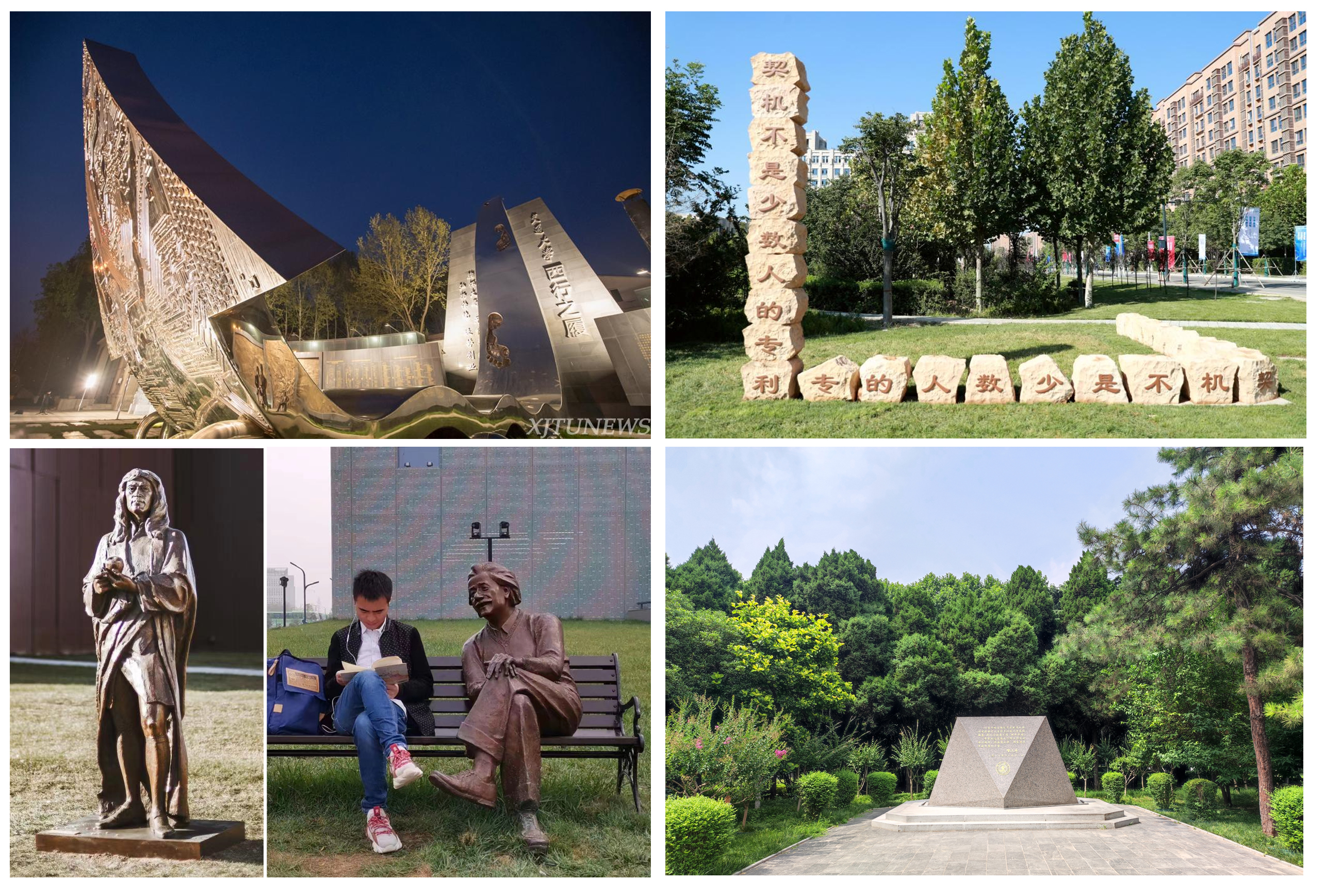 校门浮雕《慧识界》和教学主楼装饰壁画《时间-空间-物质》、四大发明广场雕塑《四大发明》和图书馆装饰浮雕《一统华夏》《文同魂》等一系列思想韵味深刻的艺术作品,师生驻足观看、流连忘返,成为校园内地标式文化景观和交大人共同的精神记忆。在雕塑领域,贾濯非声名在外,他是教育部艺术专业教学委员会委员、中国美术家协会会员、中国雕塑学会常务理事,从东北大地到珠三角特区,从长江沿岸到青海湖畔,其作品遍布多地,大到汉城湖的汉武大帝,小到大明宫的唐人宫乐图,他精巧的艺术构思和扎实的塑造功底赢得了业界无数赞誉,获奖作品不胜枚举。