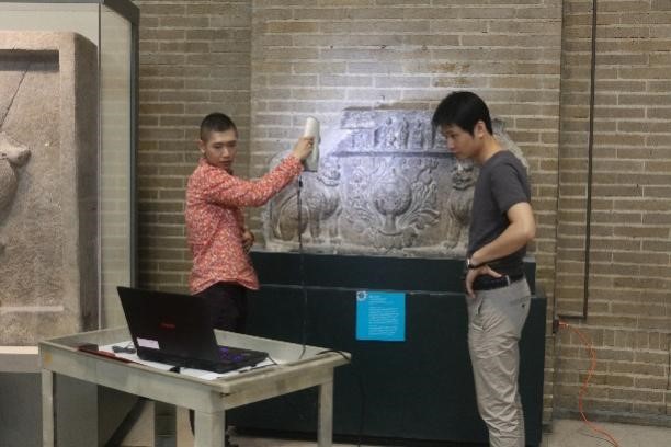 研究团队在宾夕法尼亚大学考古与人类学博物馆和北京智化寺开展三维信息采集工作